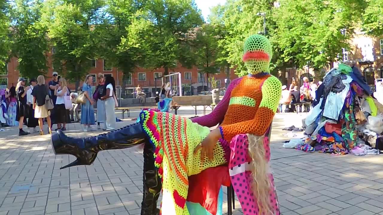 Signe Blume, Clara My og Vera Christiansen havde inviteret unge designere og kunstnere til at skabe et modeshow på Blågårds Plads ved navn ...
