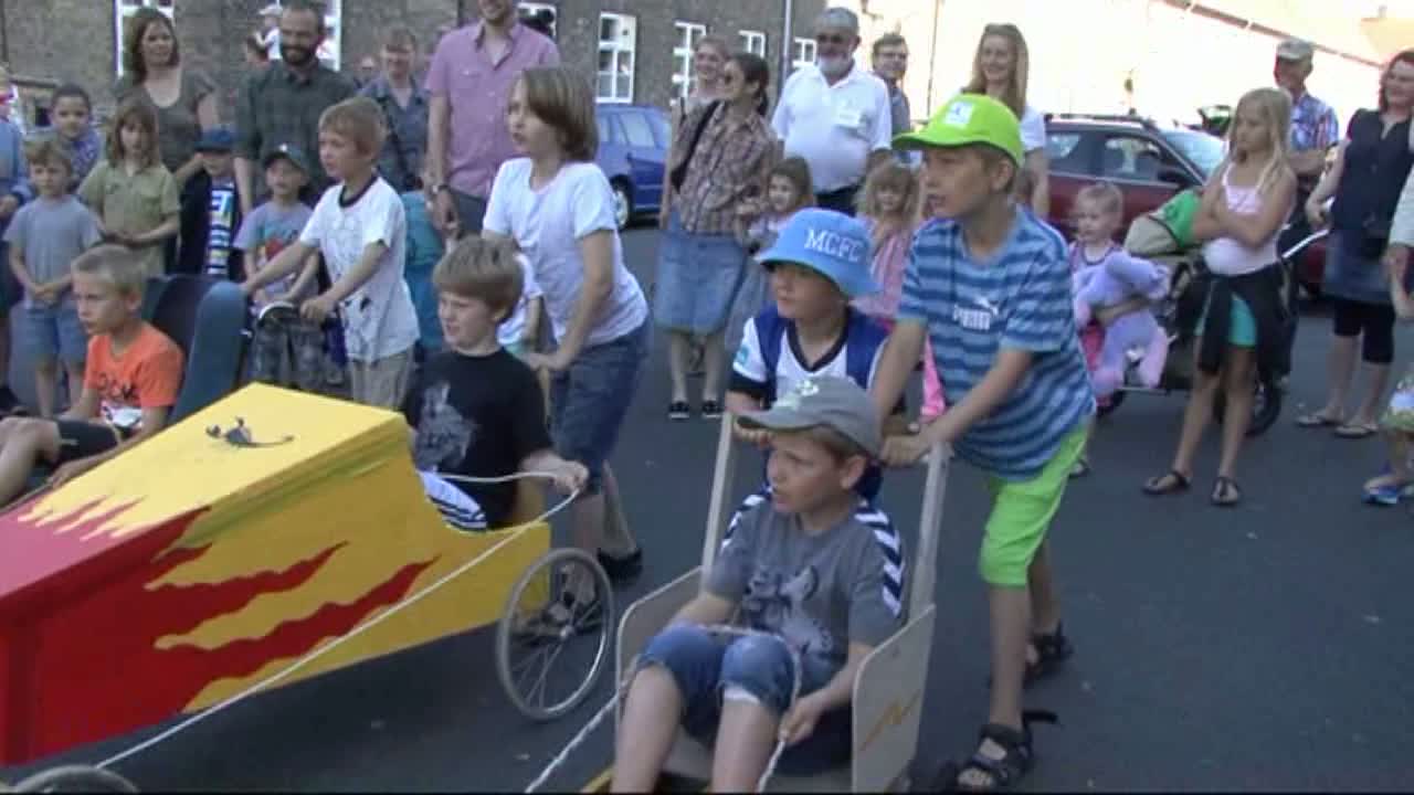 Ved Grundtvigs Kirkes sommermarked blev arrangeret et sæbekasseløb. Se hvem der vandt. Niels Gregertsen har optaget.