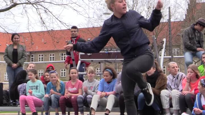Unge dansere fra Dans i Nordvest og erfarne dansere fra Uppercut mødes på Bispebjerg torv til et dance battle.