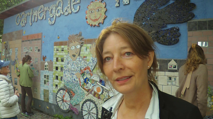 Indvielse af mosaik kunstværket uden for Gartnergade Nær genbrugsstation på Nørrebro. Kunstværket er lavet af genbrugsmaterialer indsamlet ...